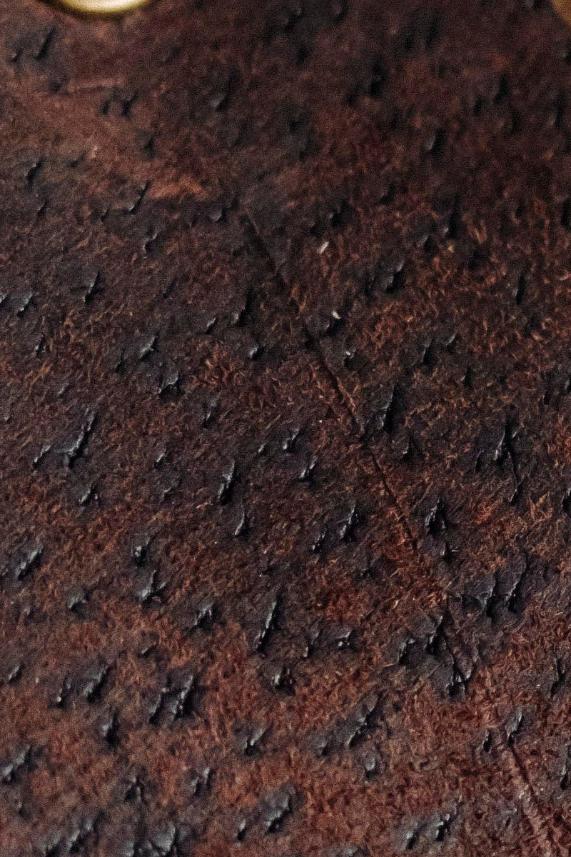 Every leather from every animal is technically unique, but nothing’s quite as eye-catching as wild boar. Their hair, so thick that Ed has likened it to twigs and porcupine quills, is extremely hard to remove and leaves very large follicles that make your Bad Leather Good distinct from any other.